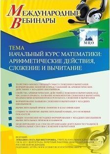 Международный вебинар "Начальный курс математики: арифметические действия, сложение и вычитание"