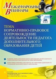 Международный вебинар Нормативно-правовое сопровождение деятельности педагога дополнительного образования детей