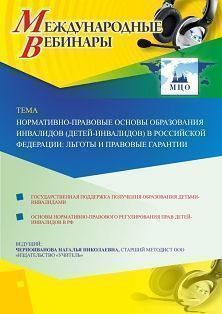 Международный вебинар Нормативно-правовые основы образования инвалидов (детей-инвалидов) в Российской Федерации: льготы и правовые гарантии