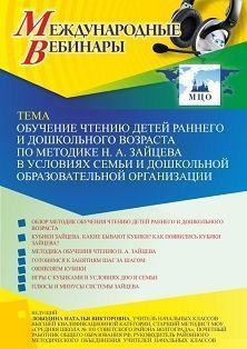 Международный вебинар Обучение чтению детей раннего и дошкольного возраста по методике Н.А. Зайцева в условиях семьи и дошкольной образовательной организации