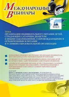 Международный вебинар Организации индивидуального питания детей, страдающих сахарным диабетом и иными заболеваниями, сопровождающимися ограничениями в питании, в условиях образовательной организации