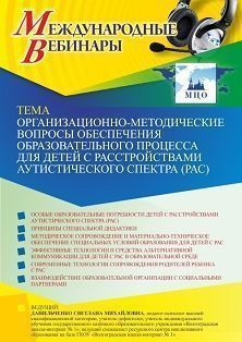 Международный вебинар Организационно-методические вопросы обеспечения образовательного процесса для детей с расстройствами аутистического спектра (РАС)