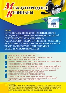 Международный вебинар Организация проектной деятельности младших школьников в образовательной деятельности Информатика как основной педагогический потенциал реализации личностно ориентированной технологии обучения и создания среды программирования