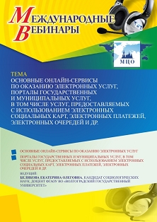 Международный вебинар Основные онлайн-сервисы по оказанию электронных услуг, порталы государственных и муниципальных услуг, в том числе услуг, предоставляемых с использованием электронных социальных карт, электронных платежей, электронных очередей и др.