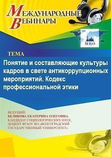 Международный вебинар Понятие и составляющие культуры кадров в свете антикоррупционных мероприятий. Кодекс профессиональной этики