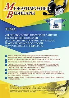Международный вебинар Предновогодние творческие занятия, мероприятия и поделки для праздничного убранства класса, школы и дома в досуговой деятельности обучающихся 5–11 классов