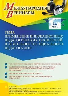 Международный вебинар Применение инновационных педагогических технологий в деятельности социального педагога ДОО