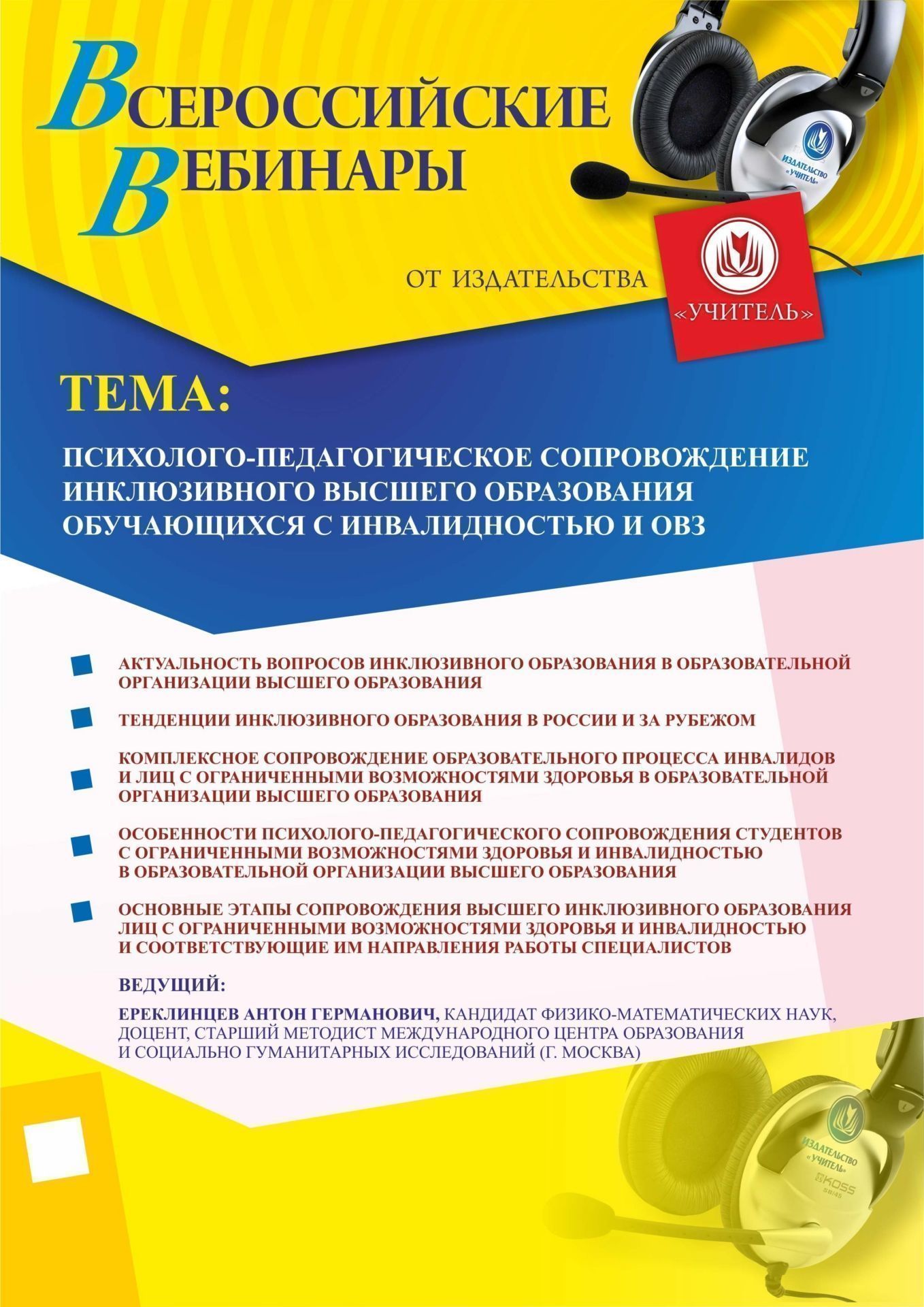 Международный вебинар "Психолого-педагогическое сопровождение инклюзивного высшего образования обучающихся с инвалидностью и ОВЗ"