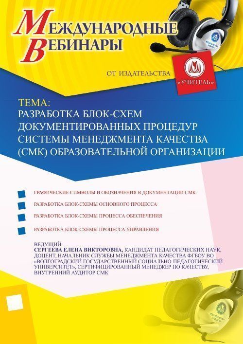 Международный вебинар "Разработка блок-схем документированных процедур системы менеджмента качества (СМК) образовательной организации"