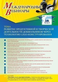 Международный вебинар Развитие продуктивной и творческой деятельности дошкольников через технологию LEGO-конструирования