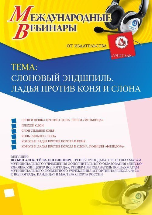 Приглашаем тренеров-преподавателей принять участие в offline-вебинаре «Слоновый эндшпиль. Ладья против коня и слона».