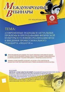 Международный вебинар Современные подходы и актуальные проблемы в преподавании физической культуры в условиях реализации ФГОС и введения профессионального стандарта "Педагог"
