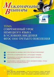 Международный вебинар Современный урок немецкого языка в условиях введения ФГОС ООО третьего поколения