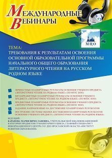 Международный вебинар Требования к результатам освоения основной образовательной программы начального общего образования литературного чтения на русском родном языке