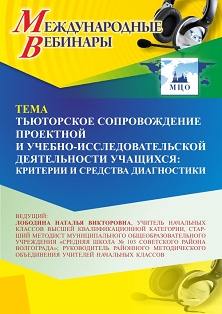 Международный вебинар Тьюторское сопровождение проектной и учебно-исследовательской деятельности учащихся: критерии и средства диагностики