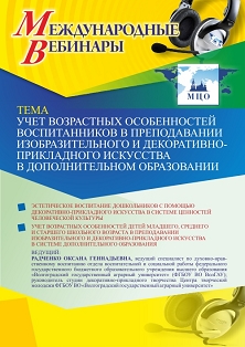 Международный вебинар Учет возрастных особенностей воспитанников в преподавании изобразительного и декоративно-прикладного искусства в дополнительном образовании