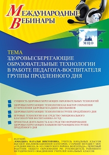 Международный вебинар Здоровьесберегающие образовательные технологии в работе педагога-воспитателя группы продленного дня