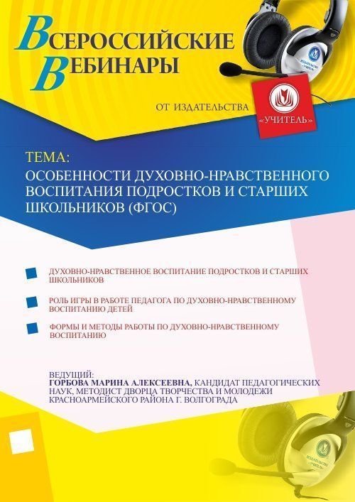 Приглашаем методистов, учителей, педагогов дополнительного образования, педагогов-организаторов и других специалистов, занимающихся вопросами социализации дошкольников, принять участие в offline-вебинаре «Особенности духовно-нравственного воспитания подростков и старших школьников (ФГОС)».