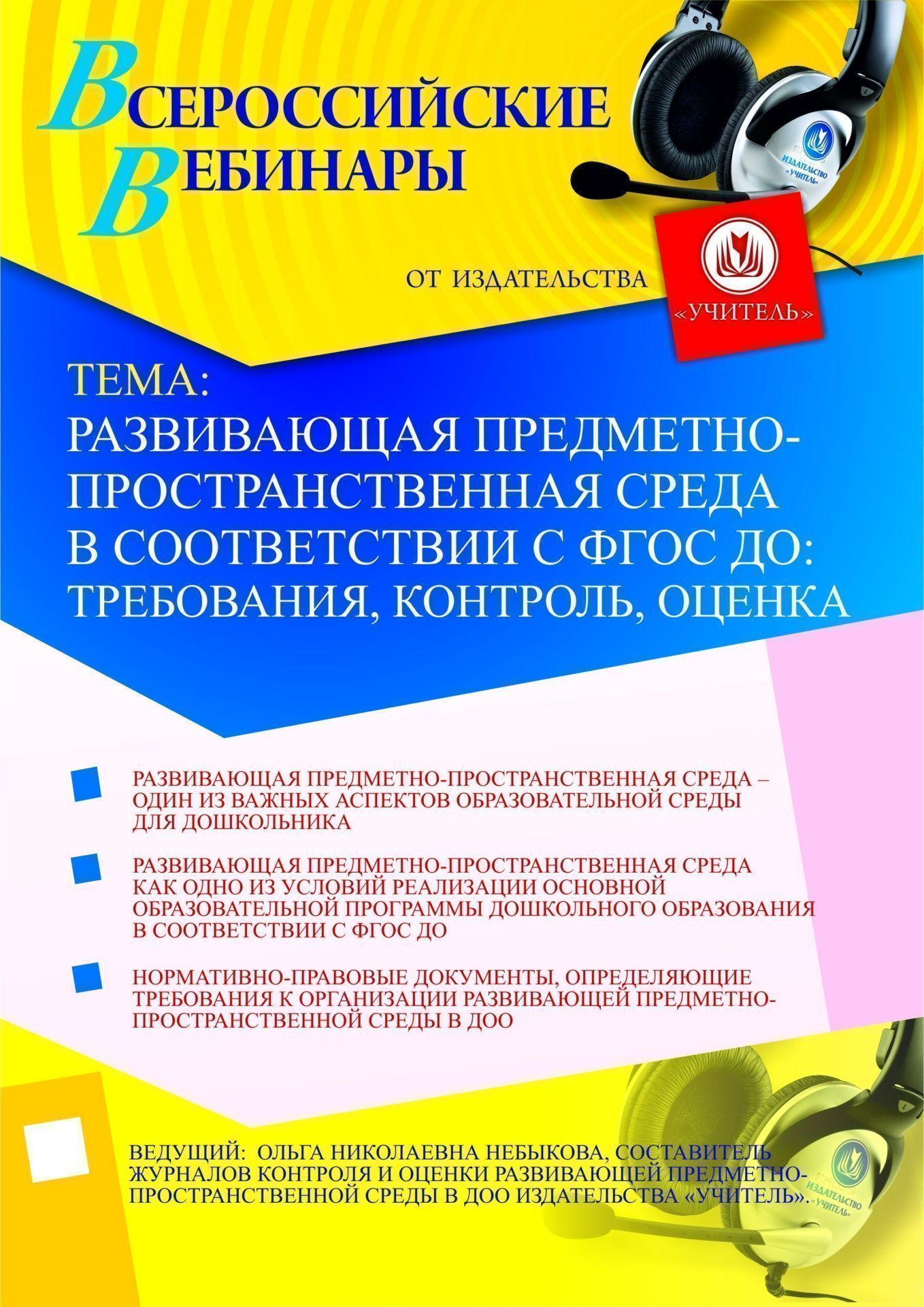 Приглашаем педагогов, методистов, старших воспитателей, заведующих ДОО, стремящихся пополнить опыт в организации и осуществлении контроля и оценки развивающей предметно-пространственной среды в контексте современных требований, принять участие в офлайн-семинаре «Развивающая предметно-пространственная среда в соответствии с ФГОС ДО: требования, контроль, оценка».