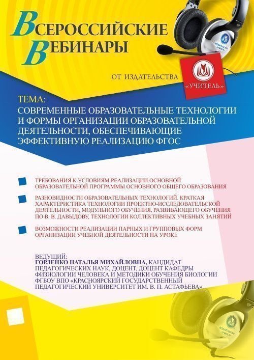Приглашаем руководителей, учителей, методистов принять участие в offline-вебинаре «Современные образовательные технологии и формы организации образовательной деятельности, обеспечивающие эффективную реализацию ФГОС».