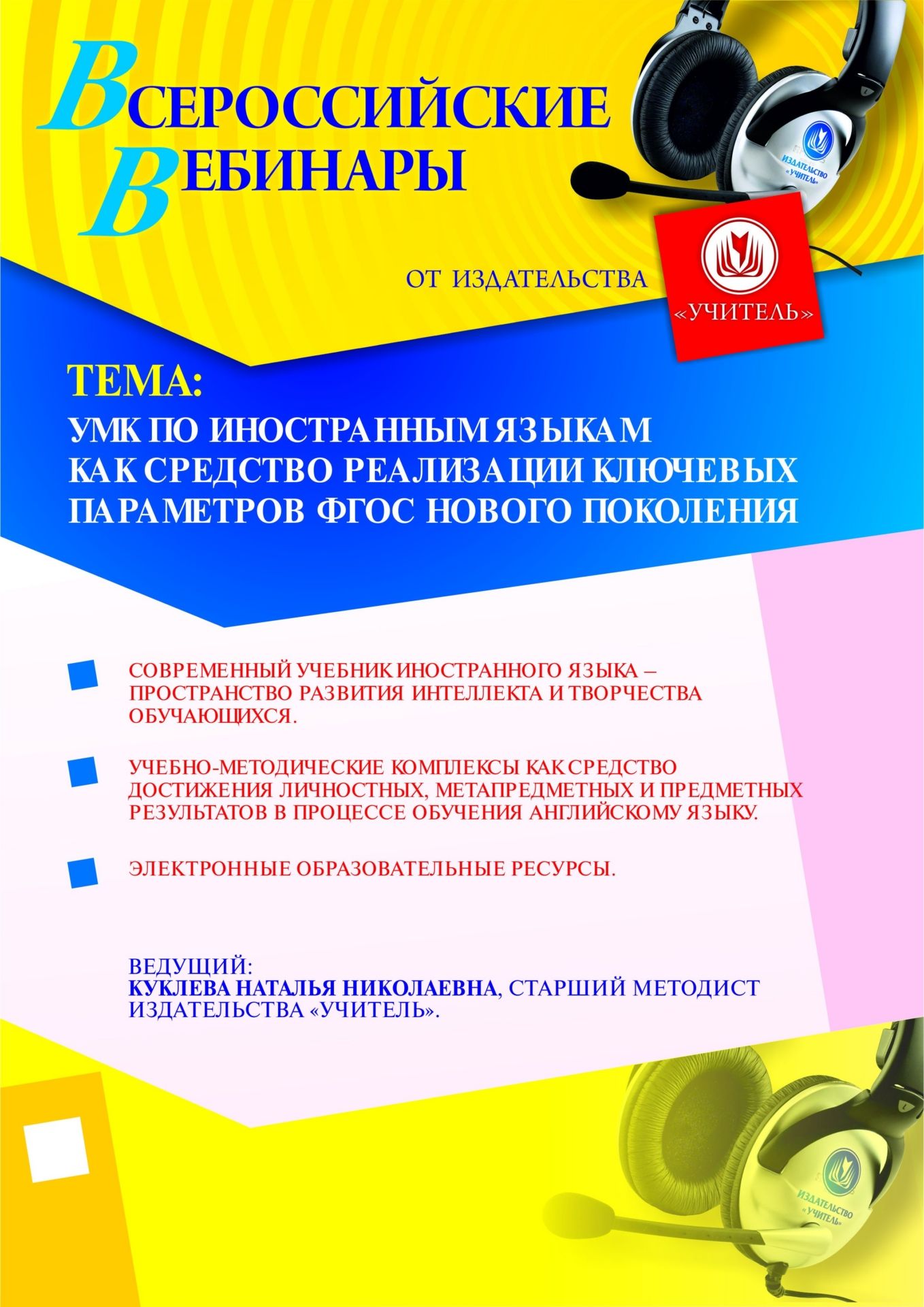 Приглашаем учителей иностранного языка, заместителей руководителя по УМР, руководителей МО, педагогов и методистов ОО принять участие в offline-вебинаре «УМК по иностранным языкам как средство реализации ключевых параметров ФГОС нового поколения».