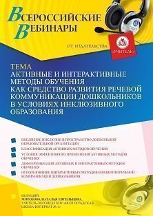Вебинар Активные и интерактивные методы обучения как средство развития речевой коммуникации дошкольников в условиях инклюзивного образования