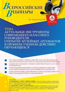 Вебинар Актуальные инструменты современного классного руководителя: открытие музейных артефактов в пробном учебном действии обучающихся