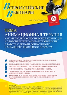 Вебинар Анимационная терапия как метод психологической коррекции и здоровьесберегающая технология в работе с детьми дошкольного и младшего школьного возраста