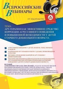 Вебинар Арт-терапия как эффективное средство коррекции агрессивного поведения и повышенной возбудимости у детей старшего дошкольного возраста