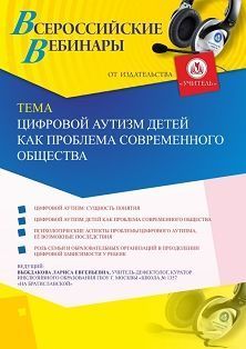 Вебинар Цифровой аутизм детей как проблема современного общества