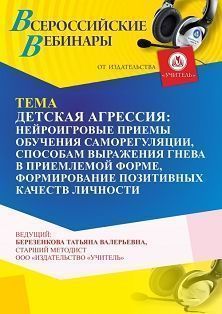 Вебинар Детская агрессия: нейроигровые приемы обучению саморегуляции, способам выражения гнева в приемлемой форме, формирование позитивных качеств личности