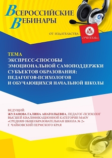 Вебинар Экспресс-способы эмоциональной самоподдержки субъектов образования: педагогов-психологов и обучающихся начальной школы