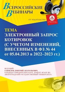 Вебинар Электронный запрос котировок (с учетом изменений, внесенных в ФЗ № 44 от 05.04.2013 в 2022 - 2023 г. г.)