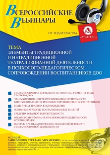 Вебинар Элементы традиционной и нетрадиционной театрализованной деятельности в психолого-педагогическом сопровождении воспитанников ДОО