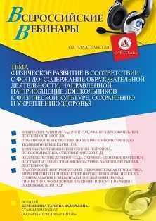 Вебинар Физическое развитие в соответствии с ФОП ДО: содержание образовательной деятельности, направленной на приобщение дошкольников к физической культуре, сохранению и укреплению здоровья