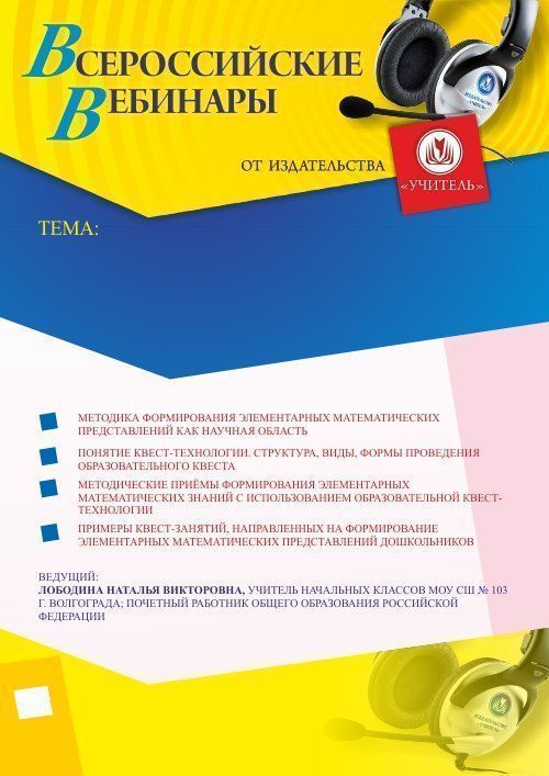 Вебинар Формирование элементарных математических представлений дошкольников с использованием образовательной квест-технологии
