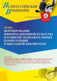 Вебинар Формирование информационной культуры и развитие познавательных компетенций в школьной библиотеке