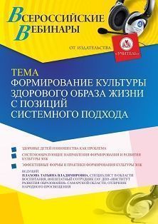Вебинар Формирование культуры здорового образа жизни с позиций системного подхода