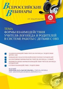 Вебинар Формы взаимодействия учителя-логопеда и родителей в системе работы с детьми с ОВЗ
