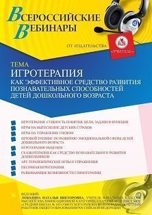 Вебинар Игротерапия как эффективное средство развития познавательных способностей детей дошкольного возраста