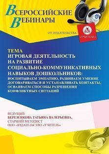 Вебинар Игровая деятельность, направленная на развитие социально-коммуникативных навыков дошкольников: воспитываем эмпатию, развиваем умение договариваться и устанавливать контакты, осваиваем способы разрешения конфликтных ситуаций
