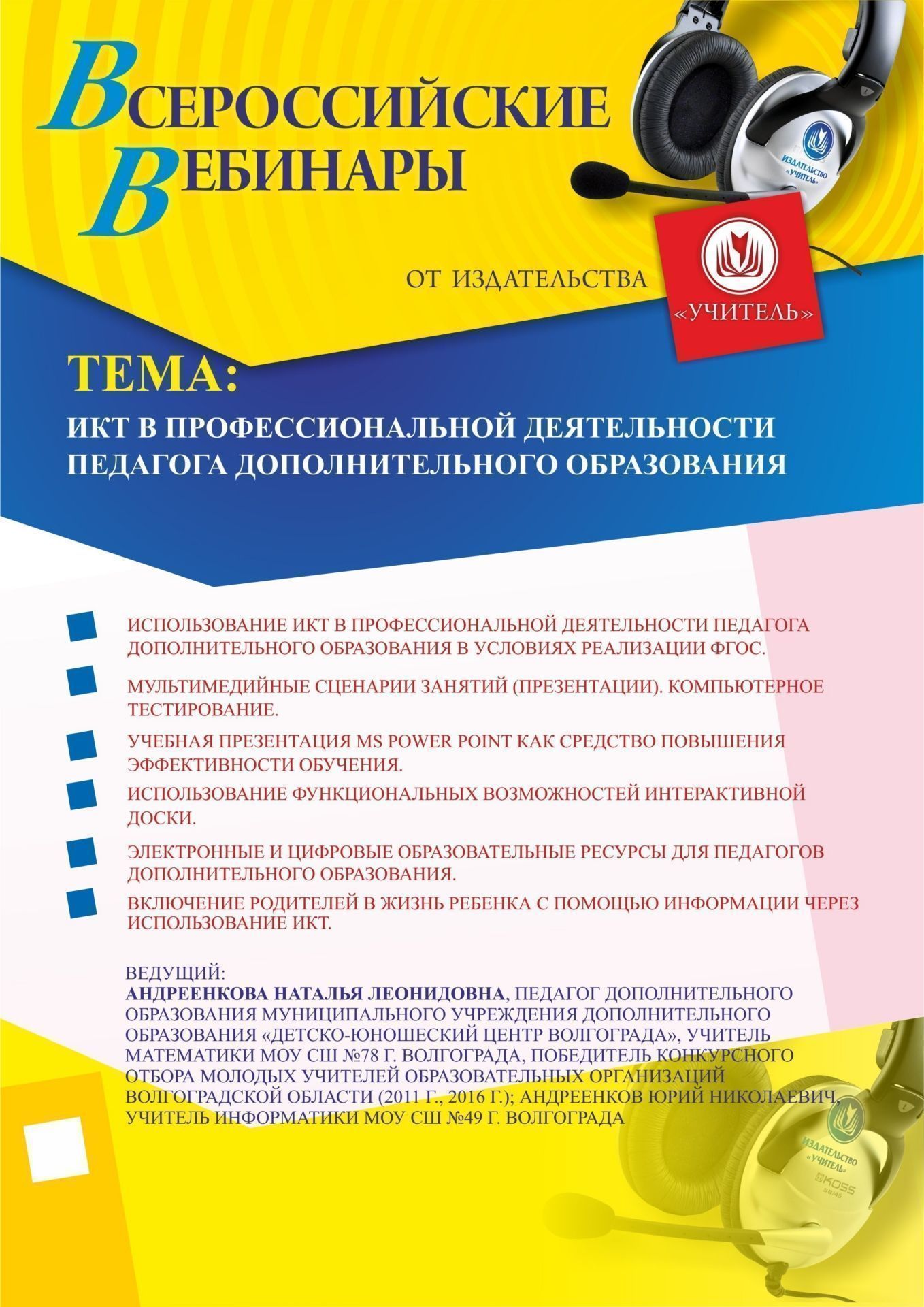Вебинар "ИКТ в профессиональной деятельности педагога дополнительного образования"