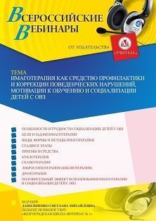 Вебинар Имаготерапия как средство профилактики и коррекции поведенческих нарушений, мотивации к обучению и социализации детей с ОВЗ