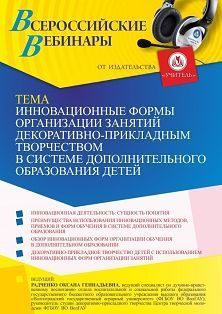 Вебинар Инновационные формы организации занятий декоративно-прикладным творчеством в системе дополнительного образования детей