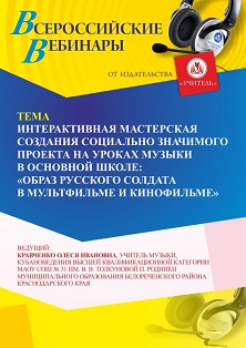 Вебинар Интерактивная мастерская создания социально значимого проекта на уроках музыки в основной школе: “Образ русского солдата в мультфильме и кинофильме”