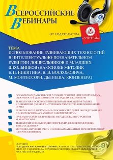 Вебинар Использование развивающих технологий в интеллектуально-познавательном развитии дошкольников и младших школьников (на основе методик Б. П. Никитина, В. В. Воскобовича, М. Монтессори, Дьенеша, Кюизенера)