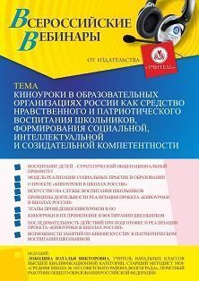 Вебинар Киноуроки в образовательных организациях России как средство нравственного и патриотического воспитания школьников, формирования социальной, интеллектуальной и созидательной компетентности