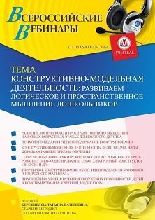 Вебинар Конструктивно-модельная деятельность: развиваем логическое и пространственное мышление дошкольников