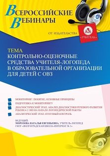 Вебинар Контрольно-оценочные средства учителя-логопеда в образовательной организации для детей с ОВЗ