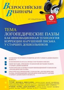 Вебинар Логопедические пазлы как инновационная технология коррекции нарушений письма у старших дошкольников